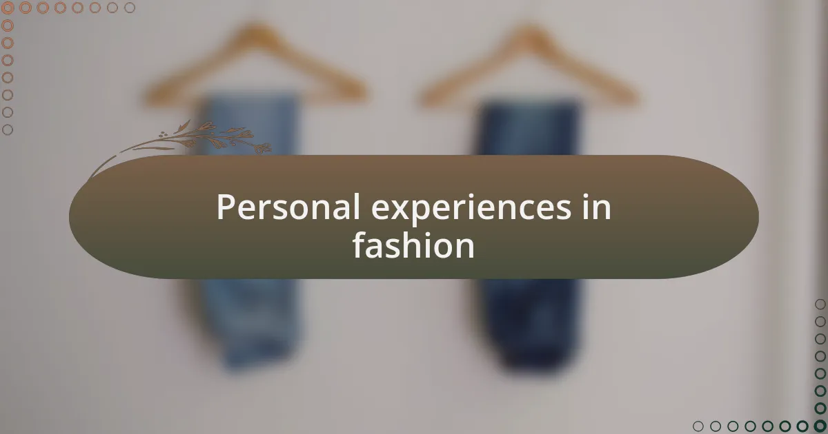 Fashion has always been a deeply personal journey for me, intertwining my emotions with every piece I create or wear. I still remember my first fashion show experience; the exhilaration mixed with nervousness as I watched my designs come to life on the runway. That moment solidified my belief that fashion is not just about aesthetics—it’s an expression of identity and emotion that connects us all. Have you ever felt your outfit perfectly captured who you were on a particular day?
