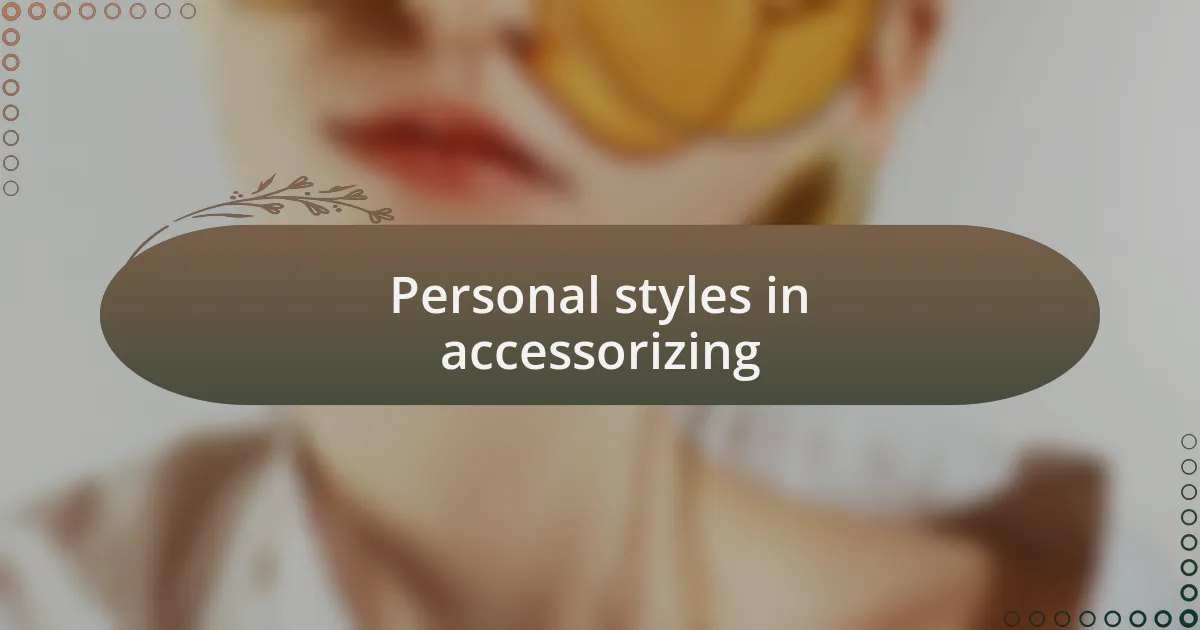 When it comes to personal styles in accessorizing, I find that layering different pieces really amplifies the uniqueness of an outfit. For instance, I once wore a simple white shirt with a delicate gold chain layered over a bolder statement necklace. That combination sparked a lot of compliments and reminded me that mixing textures and lengths can create an intriguing focal point. Have you ever tried layering? It might just transform your go-to pieces into something fresh and exciting.